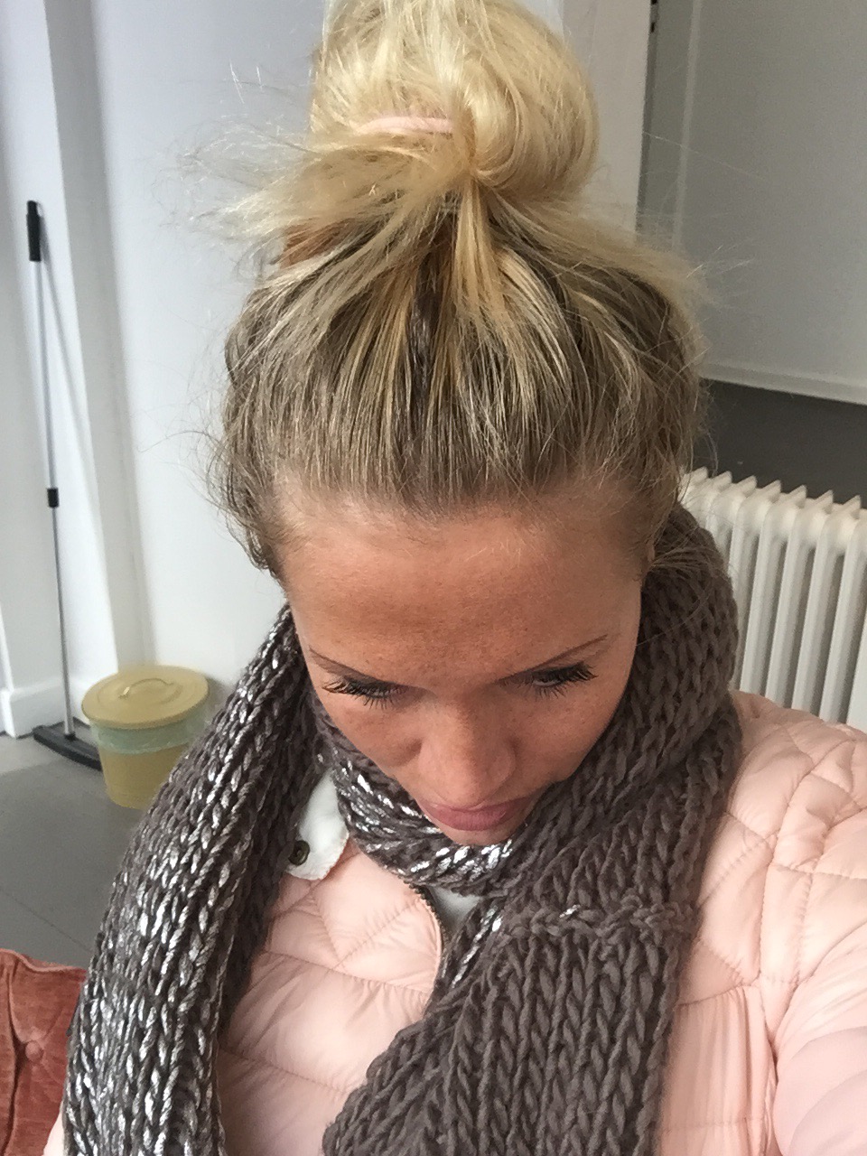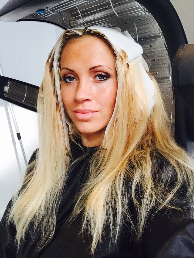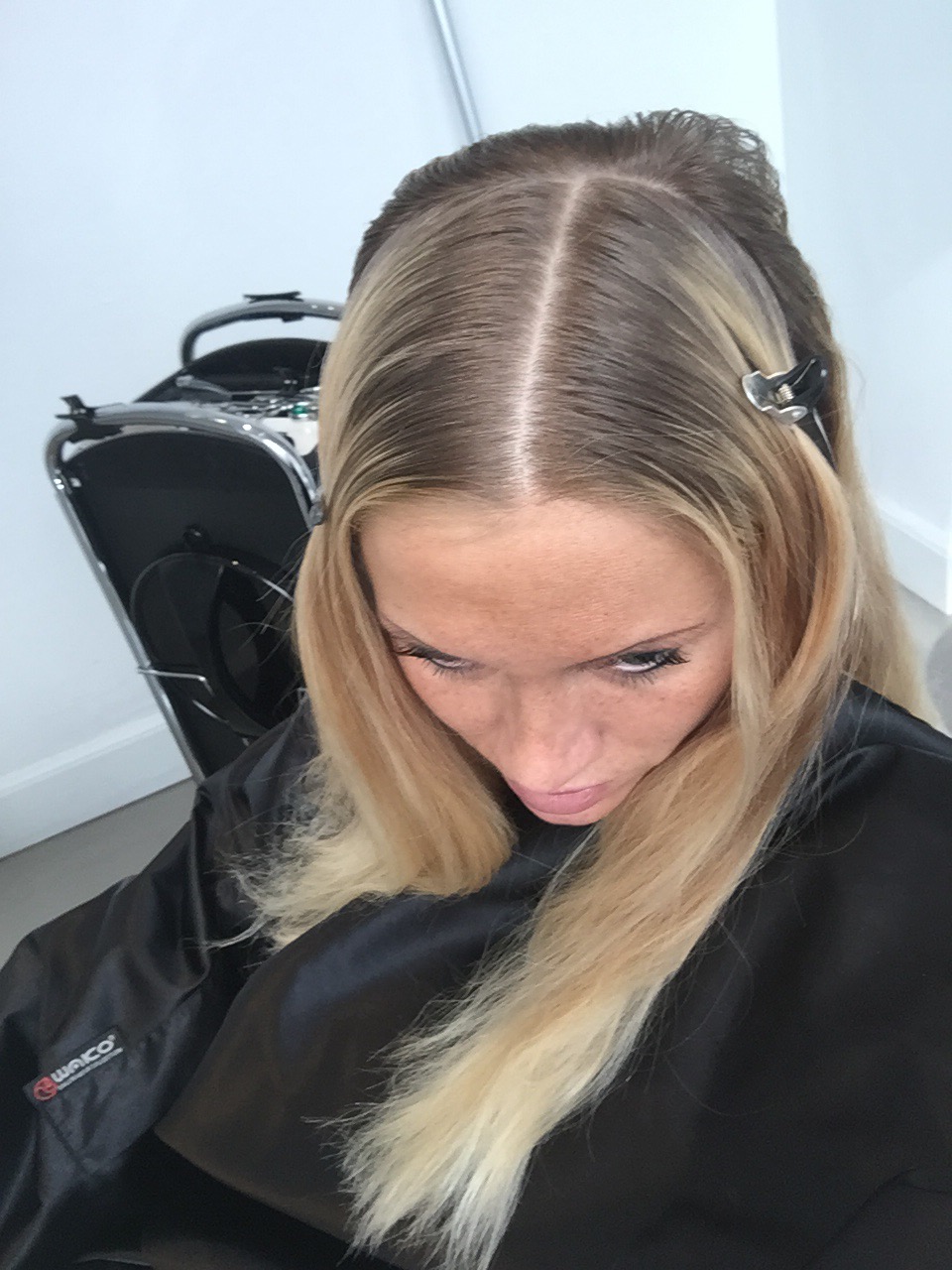 Mit hår trængte til lyse striber i bunden, samt noget rødligt.