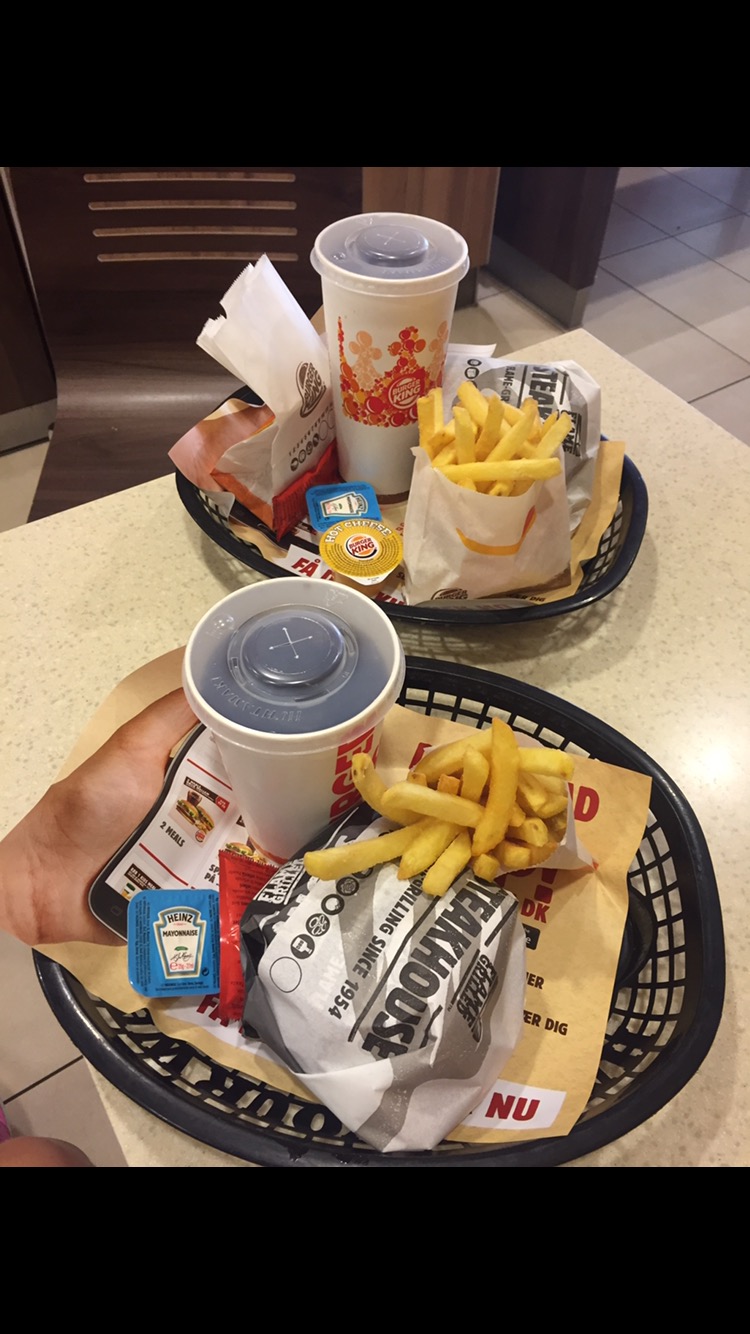 Vi har begge tømmermænd, så vi endte lige på burger king først.
