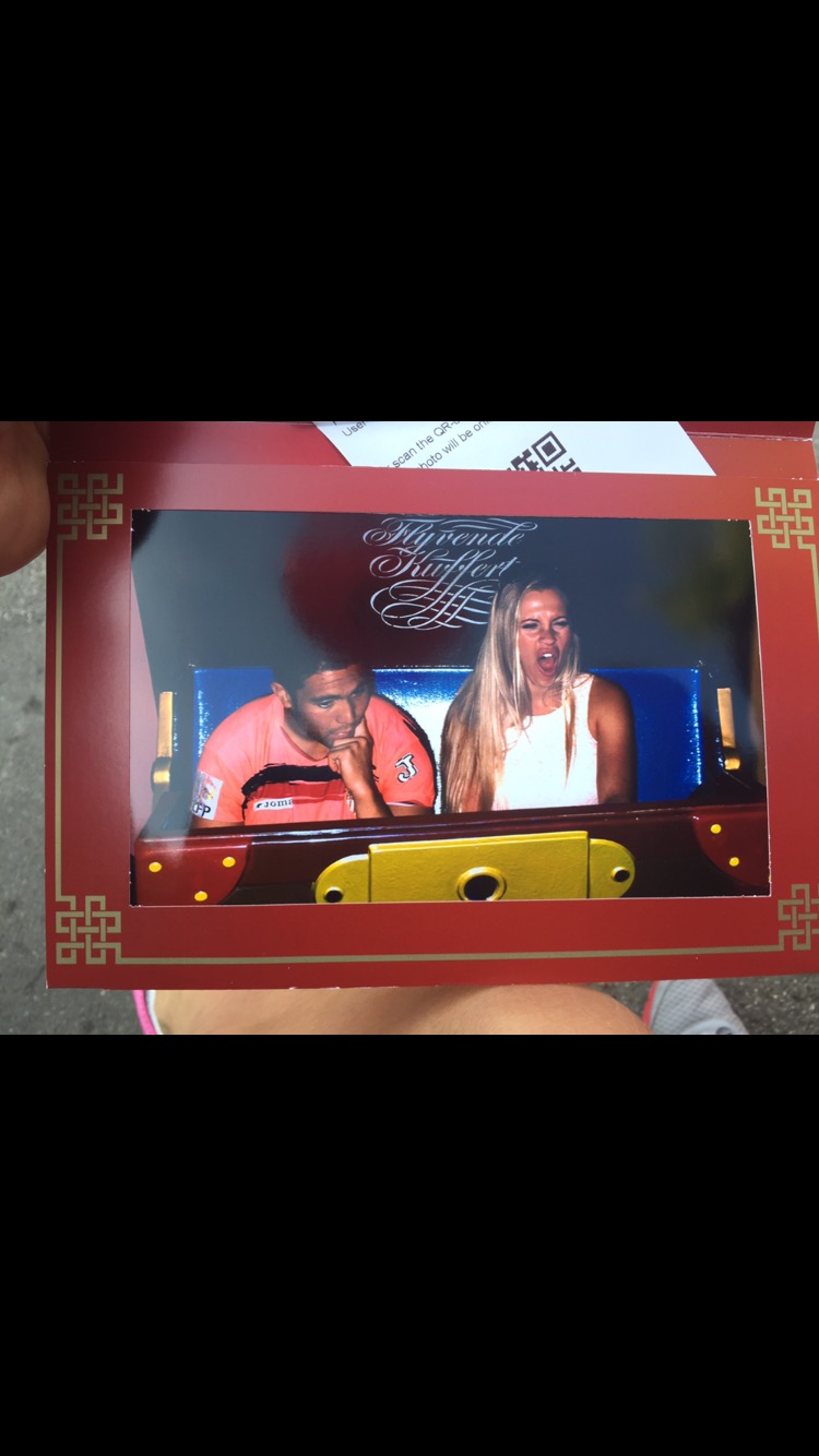 Vi havde også den vildeste griner på, fordi da vi var i den flyvende kuffert, blev der åbenbart taget billeder. Og det endte ud i det her. Ja foto manden forstod ik helt vi ville købe det, men vi synes bare det var så sjovt.