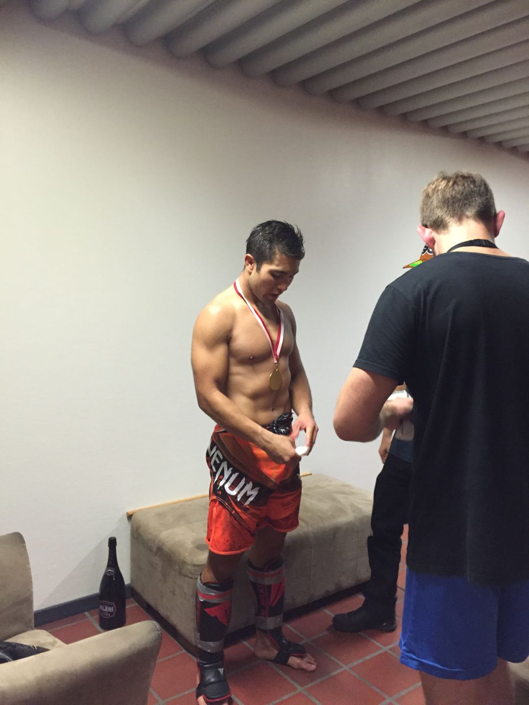 I kan se hele hans kamp inde på viaplay. Super fed kamp, som han vandt efter små 3 minutter. Generelt kører de 2*5 minutter. Medmindre en af dem tapper ud eller dommeren stopper kampen. Im proud.