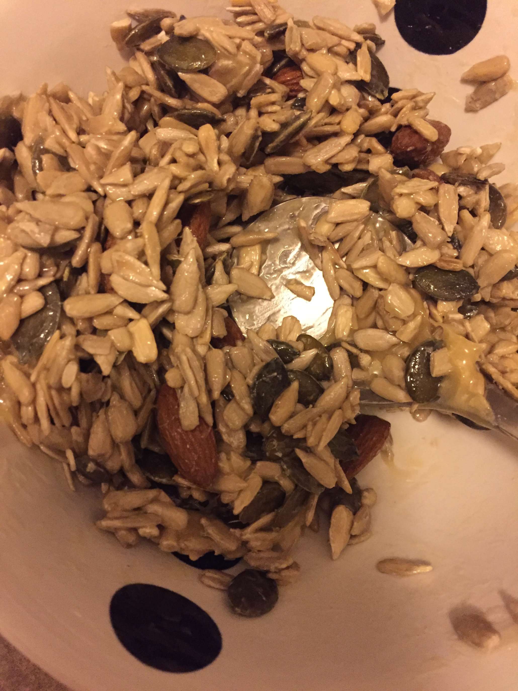 Da jeg kom hjem sent igår var jeg self stadig sulten ? Så jeg lavede en halv bradepande med honning og nødder.